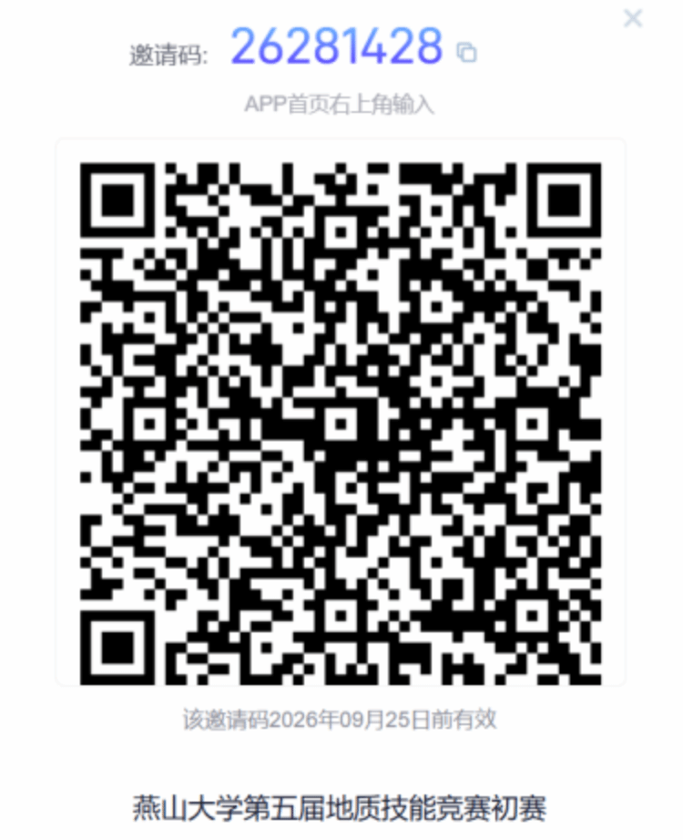 备注:没问题的同学可以不进竞赛群,有问题的同学可以进群咨询,进群后修改群名片,格式为:学院+姓名,两个群等效,只需进一个群咨询即可。所有参赛同学及时关注学习通的竞赛通知。燕山大学第五届地质技能竞赛QQ 群:
